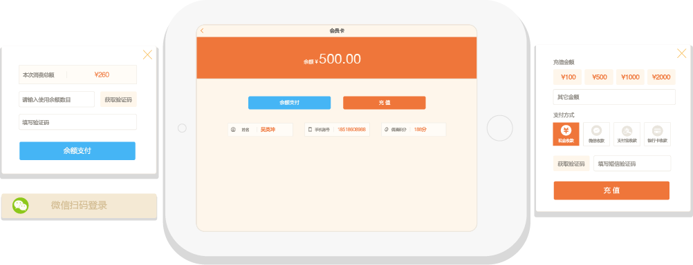 顾客端iPad电子菜单,可实现点菜、下单、呼叫服务、会员充值消费以及支付宝、微信支付等操作,固定每桌一台iPad效果更佳!